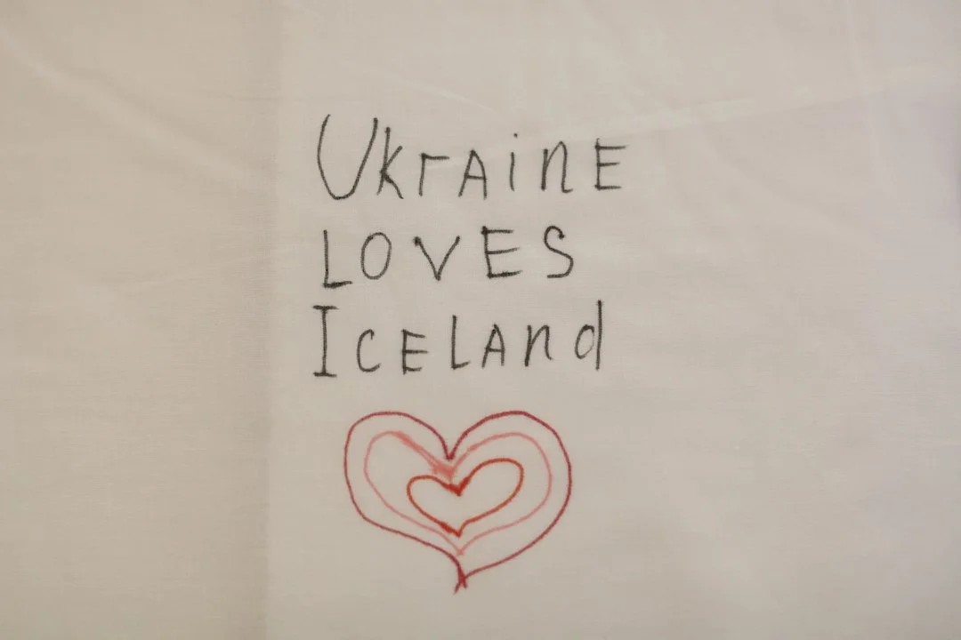 The tablecloth became an art piece. It is here on display in Kvikan, the Culture House of Grindavík.